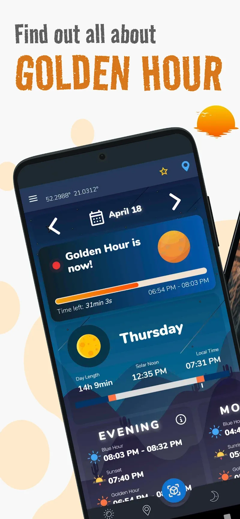 Golden Hour Sunset Photography Mod Apk matic clock, with this clock they will automatically track the exact time frames so that you can have sharp photos with the most beautiful scenery of the day without having to do too many complicated operations.Accurate time tracking: No matter where you are or what time of day you are, the application can identify the golden hour and blue hour most accurately, without you having to manually track the time, which is both time-consuming and inaccurate.Easy photoshoots: The application will give you a detailed plan so you can take th