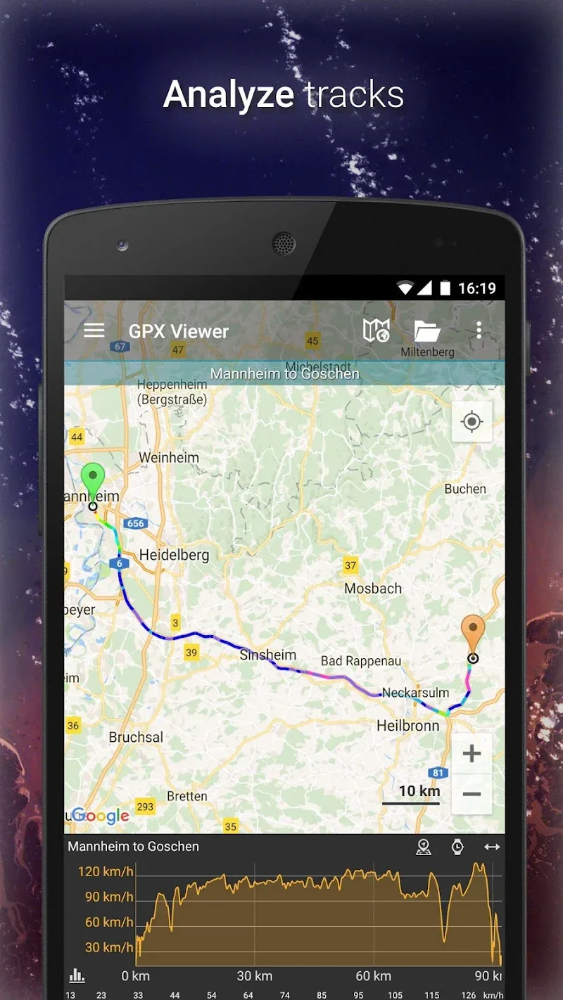 Gpx Viewer Mod Apk nce your next adventure!At its core, GPX Viewer renders GPX, KML, KMZ and LOC files as movable map overlays with stylized lines and icons. Pan, zoom and rotate to inspect routes on granular levels. Waypoints reveal details like photos, comments and elevation on tap. See your data come alive!Dive deep into the numbers that matter most using GPX Viewer’s detailed graphs and info readouts showing elevation changes, speed averages, heart rate variances, temperature shifts and more over your route’s timeline.Enable your device location and watch as GPX Viewer displays and tracks your real-time position on the map as you move. Auto-