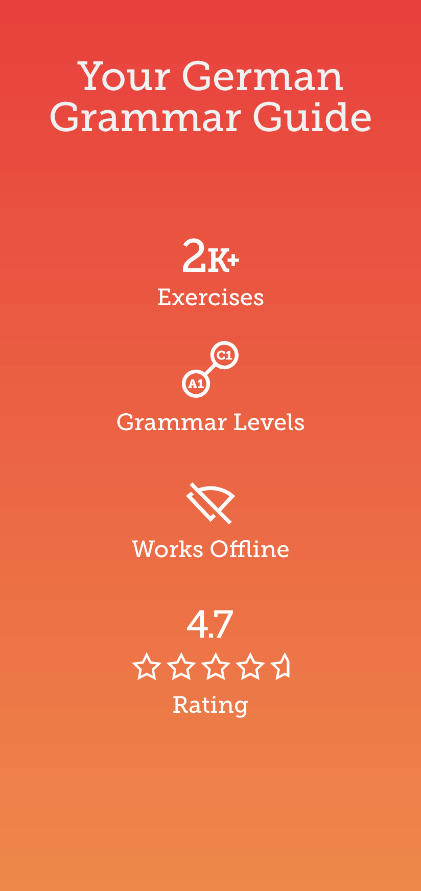 Grammatisch is a perfect choice if you want to learn a new language. The variety of lessons often comes with detailed explanations. From there, they will be motivated to do the exercises and quickly complete them over time.COMPREHENSIVE GRAMMAR COVERAGEIf you are looking to learn German, this is a perfect choice for everyone. The variety of lessons can completely help each person unlock new skills.All Levels