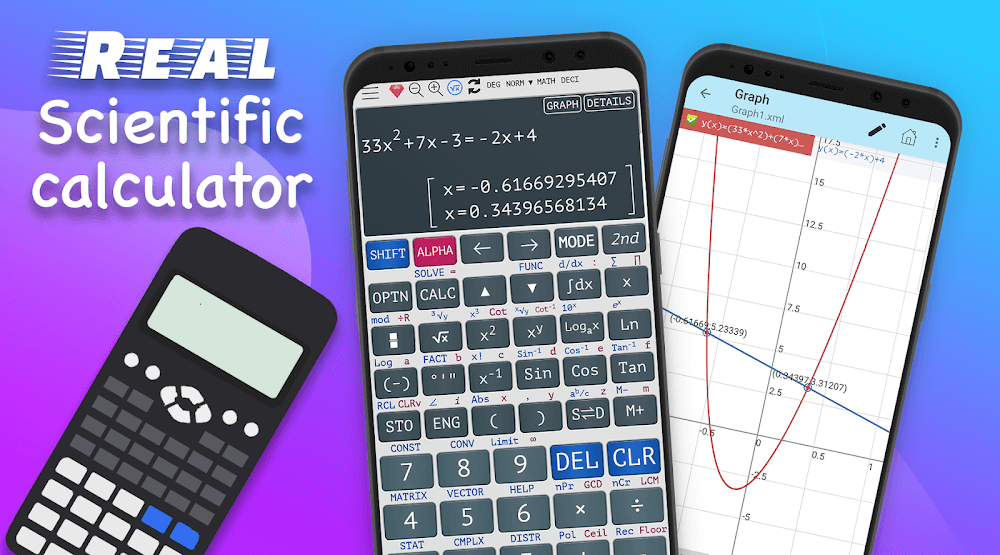 Graphing Scientific Calculator Mod Apk will be able to enter any problem such as calculus, integrals, derivatives. From there, a few short seconds will create the results you need.Versatile Solvers Offer: Besides complex calculations, finding hidden values is also a matter of concern. You need to enter the correct information for more accurate identification and solving.Graphing Capabilities Support: The application not only works with letters and numbers but can also i