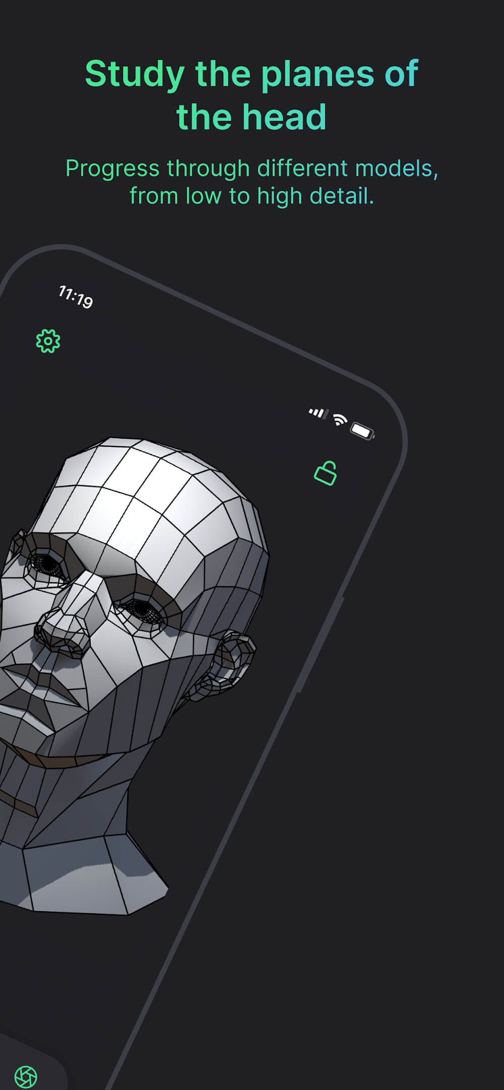 Head Model Studio Premium t. But why stop there? Switch gears to Studio Lighting and take the reins of your light show, sculpting excellent lighting compositions with multiple spotlights of varying colors. Adjust the angle and intensity to study the planes of the head, thereby unveiling a world of tone and texture.CUSTOMIZABLE RENDERING: YOUR ART, YOUR WAYHead Model Studio allows you to tailor your experience to your liking. The app’s edge outline function is like a mentor in your pocket, accentuating the planes for easier understanding. When you’re ready to spread your wings, simply turn it off to practice in a more realistic setting. Want to experiment with texture? Modify the shininess for a unique material rendering experience. It’s like holding a fully-equipped art studio in your hand.ACCESSIBLE AND AFFORDABLEQuality and affordability join hands in Head Model Studio. With several free models, you can dip your toes in without spending a dime. If you’re ready to