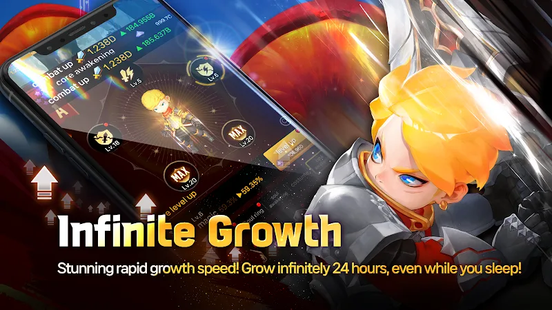 Hello Hero Lionheart Afk Premium pate in battles more often. Battles with high achievements will be rewarded more generously than battles with low achievements. This process helps players accumulate resources easily.STRESS-FREE GROWTHEach warrior has his mission to protect the territory. Players can join battles that stimulate both sight and hearing. The game space always gives you a feeling of rapid progress without stress.Idle Gameplay Mechanics: The idle gameplay allows players to develop their combat achievements without being active. The simple gameplay also helps players quickly integrate into this world. The challenges and missions cre