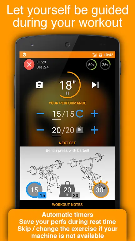 Workout Planner Gym Trainer Premium got you covered with its extensive library of over 100 predefined fitness exercises. These are categorized by muscle groups such as abs, forearms, biceps, back, shoulders, and more. There are also beginners’ workout routines, such as the 7 minutes workout and full body workout, which require no equipment.PERSONALIZED WORKOUT ROUTINES: CUSTOMIZABLE EXERCISE GROUPSIn the spirit of offering a tailored fitness experience, Hercules Workout enables you to create your workouts and exercises. You can conveniently sort them into customizable groups, and generate new routines using the workout generator. The app also allows you to set specific goals, customizing rest time, loads, and number of repetitions for each set.INTERACTIVE LOGGING: PHOTO CAPABILITIES AND ON-THE-FLY EDITINGYou can forget about manually logging your performance with Hercules Workout. Du