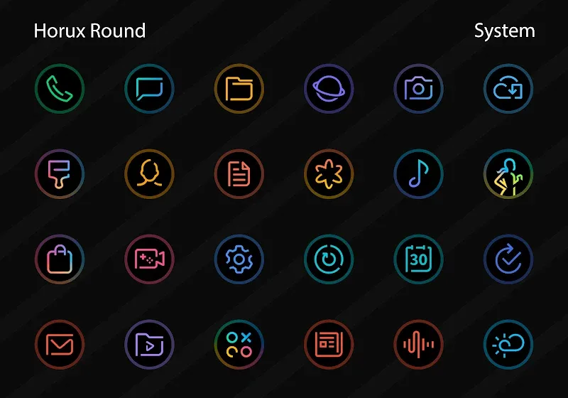 Horux Icon Pack Round Premium llection of 3900 icons, ensuring that almost every application is covered.Design Meets Style: The system will include for its users 270 wallpapers providing extensive customization options.Choose Your Look: Users will have many alternatives for each icon, which will allow customization according to personal preferences.LAUNCHER COMPATIBILITYIn addition to a huge collection of icons, the application will also provide its users with the ability to be compatible with many different lau