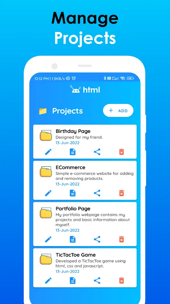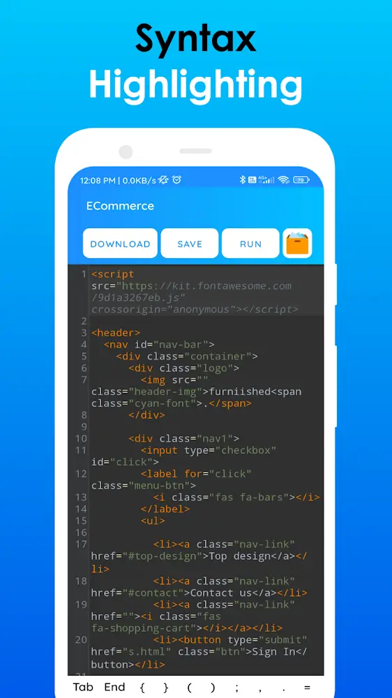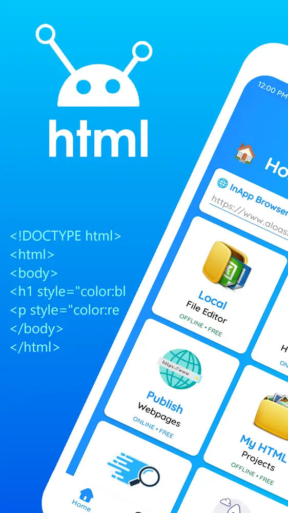 Html Editor Premium he ability to write HTML (Hyper Text Markup Language), CSS (Cascading Style Sheets), and JS (JavaScript) code. ) simple. Not only that, but the application also gives its users the ability to design with jQuery and AJAX most smoothly compared to other applications used on mobile phones.specially optimized interfaceOne of the