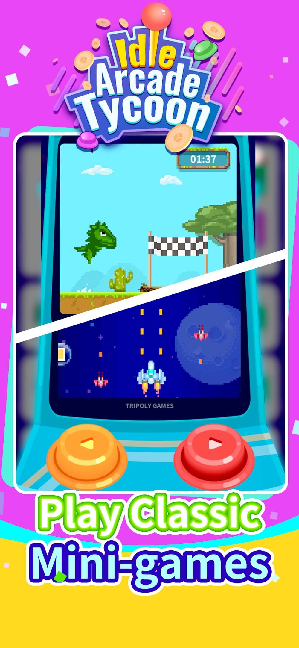Idle Arcade Tycoon Premium t cause boredom. Besides, players can also discover more new games to update the system and meet the most demanding guests. Now everything is in your hands, so seize the opportunity to become the richest tycoon.TONS OF USEFUL EVENTS AND ACTIVITIES, AND YOU ALSO NEED TO UPGRADE EVERYTHINGIn addition to the above unique features, the game also provides you with a series of other tasks and jobs. Moreover, players can freely adjust their entertainment center through interior design or changing colors.