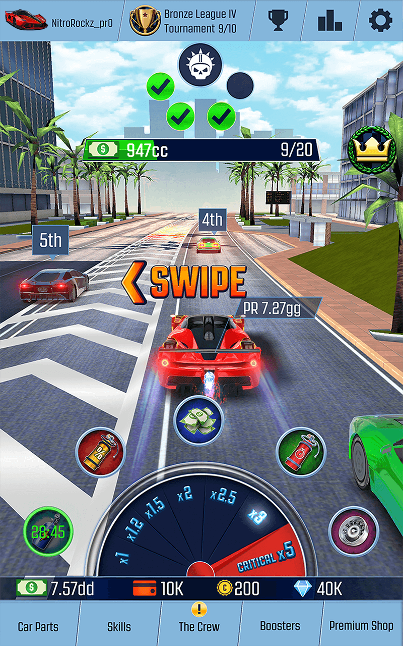 Idle Racing Go Clicker Tycoon liteapks with the Boss car. To make more money and boosters, complete achievements like reaching 1k performance, earning 2k cash, beating 100 opponents, completing Bronze League 5, tapping 200 times, etc. And also you can assemble sets with boosters. If you want more blueprints, swipe five times. Unlock more levels and get skills like Super Fuel for high performance, Automatic Ride for auto taps, Hazardous Nitro for critical Nitro chance, etc. To experience all these fun challenges, play Idle Racing GO: Clicker Tycoon and show your racing spirit.
