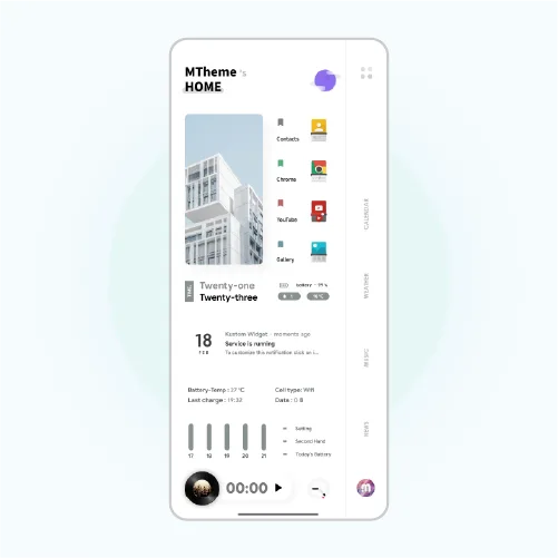 Imagine Ui For Klwp liteapks s both aesthetically pleasing, concise, and logical. In addition, the application helps you manage your smartphone’s system more scientifically and in detail.Weather Information: This is one of the most popular widgets on smartphones. It’s more convenient than anything else.Music Control: The music player also greatly assists you in its operation.