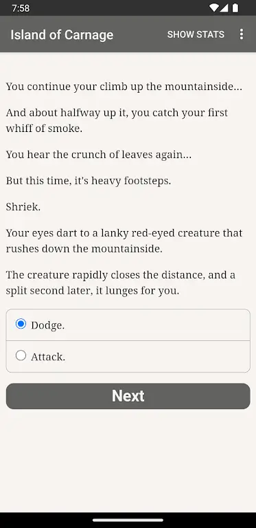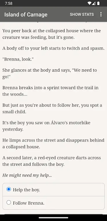 Island Of Carnage Mod Apk t can still create unpredictable, dangerous situations. Therefore, this creates excitement in each player’s experience and helps them understand the plot and characters deeply. Replaying a story with a different experience often happens.MAKE THE RIGHT CHOICEIsland of Carnage puts players in the world of a novel and asks them to make choices. This is done every time they receive new information, which sometimes creates hesitation. At the same time, it is compl