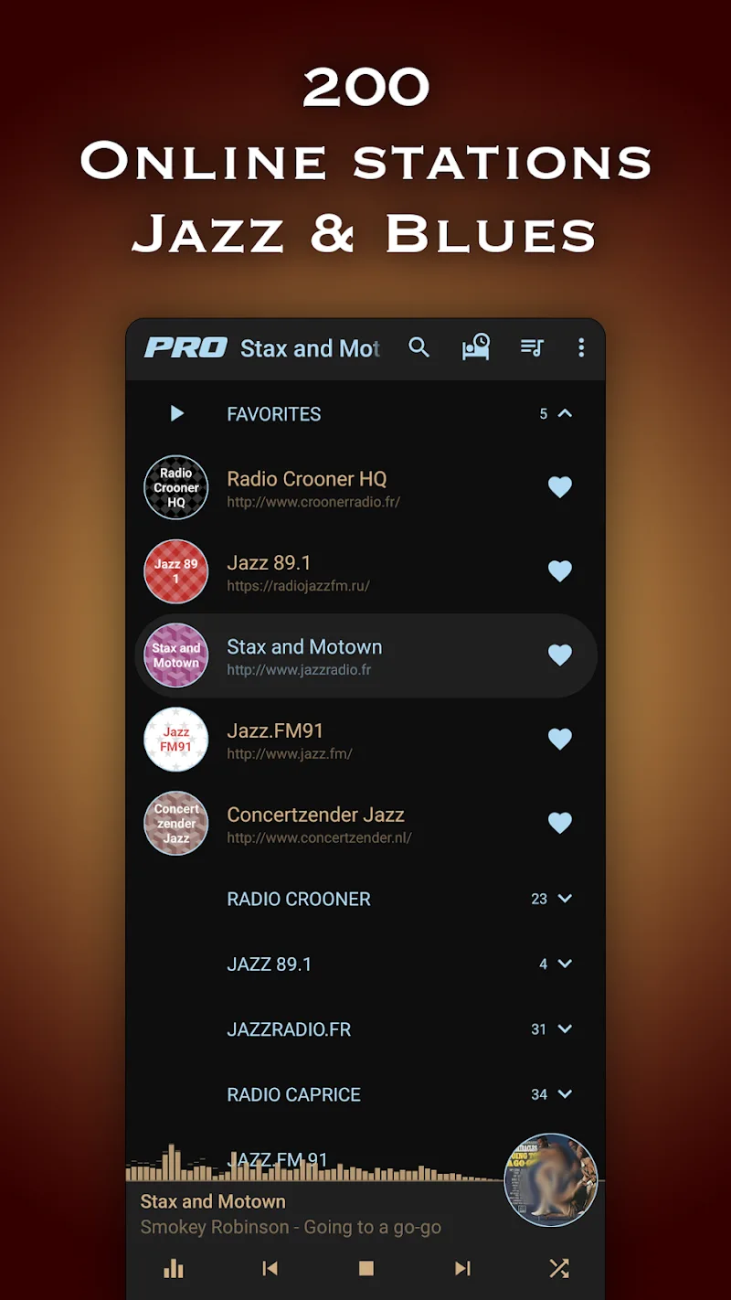 Jazz Blues Music Radio Premium You can listen to music while driving or doing housework. Bringing you extremely dynamic entertainment moments without making you feel bored even for a second.CUSTOMIZABLE AUDIO EXPERIENCEIn this application, you can customize the sound system according to your preferences. Bringing you the most attractive and suitable sounds. So you can immerse yourself for hours without getting upset.Powerful Equalizer: Coming to this application, you will own an extremely powerful and modern sound equalizer. W