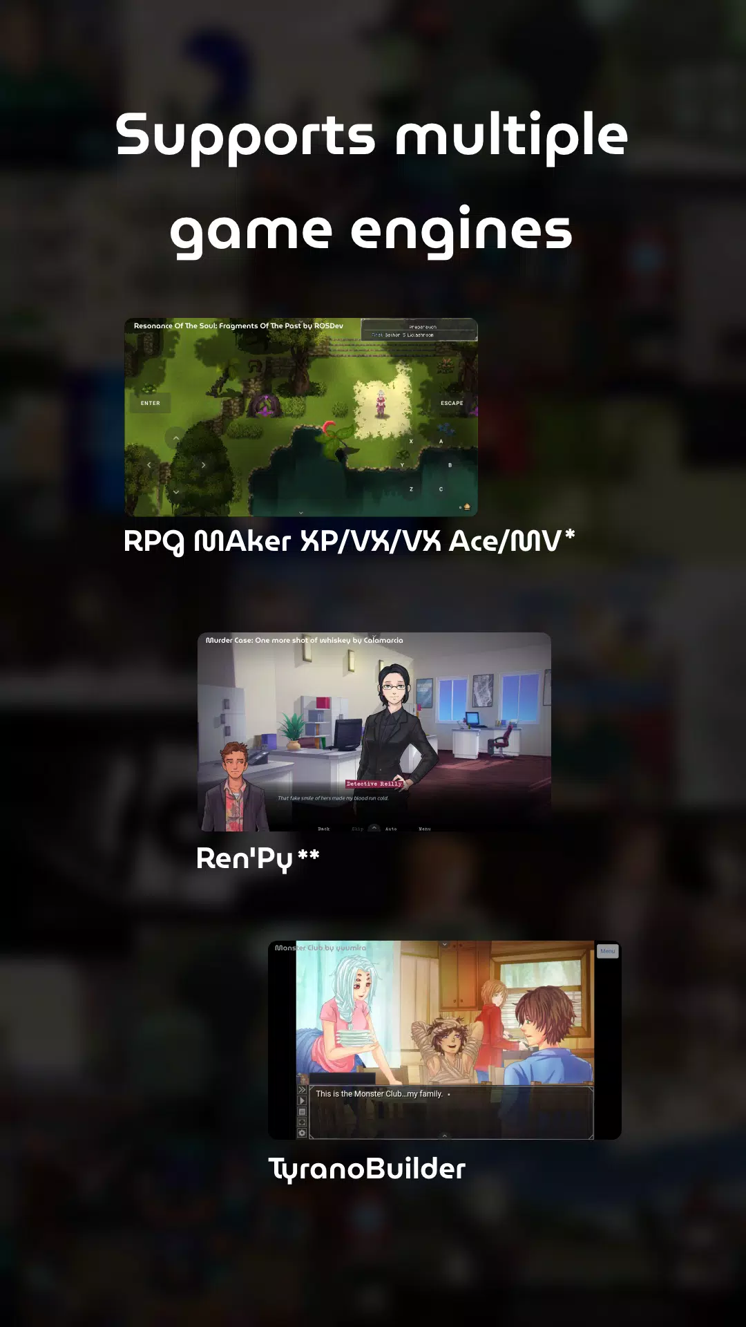 Joiplay Premium gines makes it a good app among the ones that are available on the internet.Play RPG Maker: This app can play any type of game but it is optimized to play RPG games. They are all role-playing games with high combat speed.ENHANCED USER EXPERIENCEAnd of course, with games that are too old, it will not be as good as the current games. So, this app will make it look more modern. That means, everything that you can do with this g