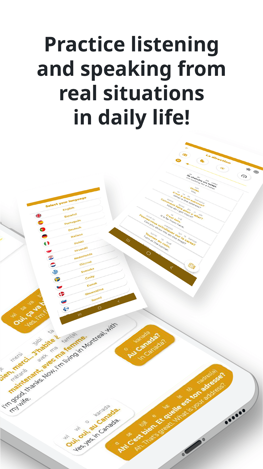 Learn French Listening And Speaking liteapks the way to break and improve the listening skill and innovation of native speakers. Along with this also learned helpful phrases to communicate in daily talking and a group of vocabulary.Like so many apps, this French listening and speaking app also has advanced features like – Common conversations, show or hide transcript, and translation. More than 750 lessons about everyday French conversation in daily life along with the audio file. Playlist mode, practice game. Learn French through news and stories.