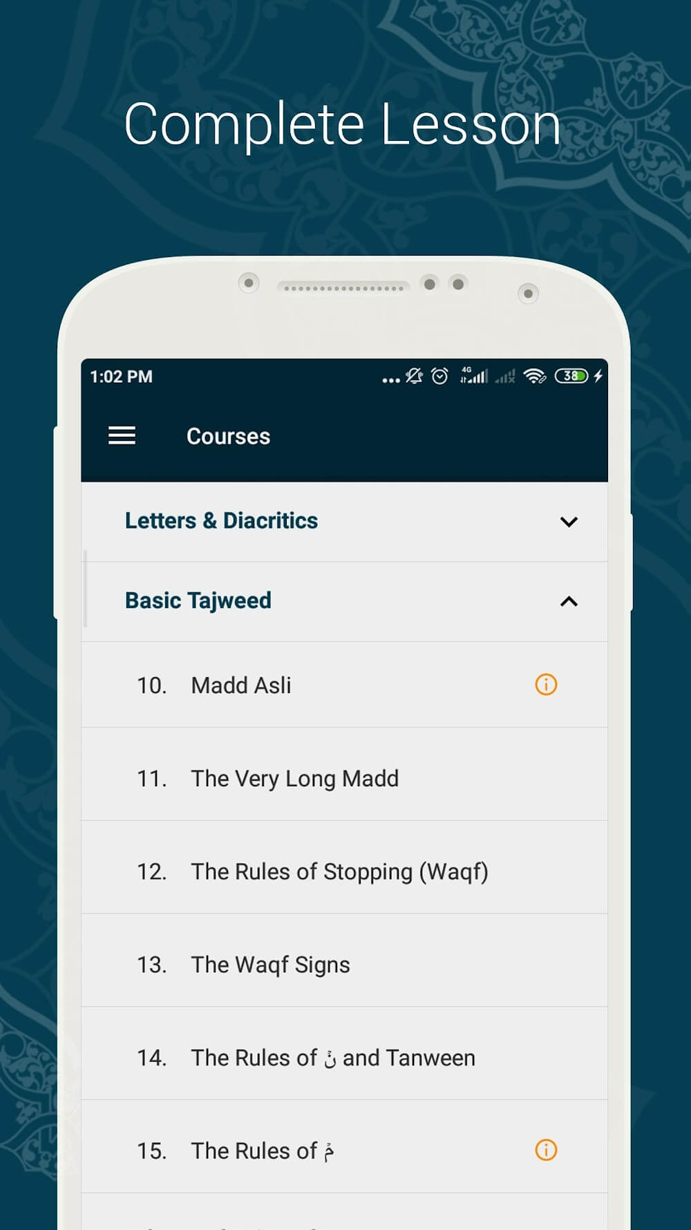Learn Quran Tajwid Premium much. The system often suggests translation elements and translated words are often highlighted.Visual Learning Tools: Learning can often be a lot of fun if you take advantage of the available resources. Not every concept will be explained in words, but will be explained in images and videos.EFFECTIVE PROGRESS TRACKINGThroughout the process of use, each person’s skills can be improved positively. However, you also need to pay attention to the assessment features to know your current progress.Personal Recording Function: The most used feature is