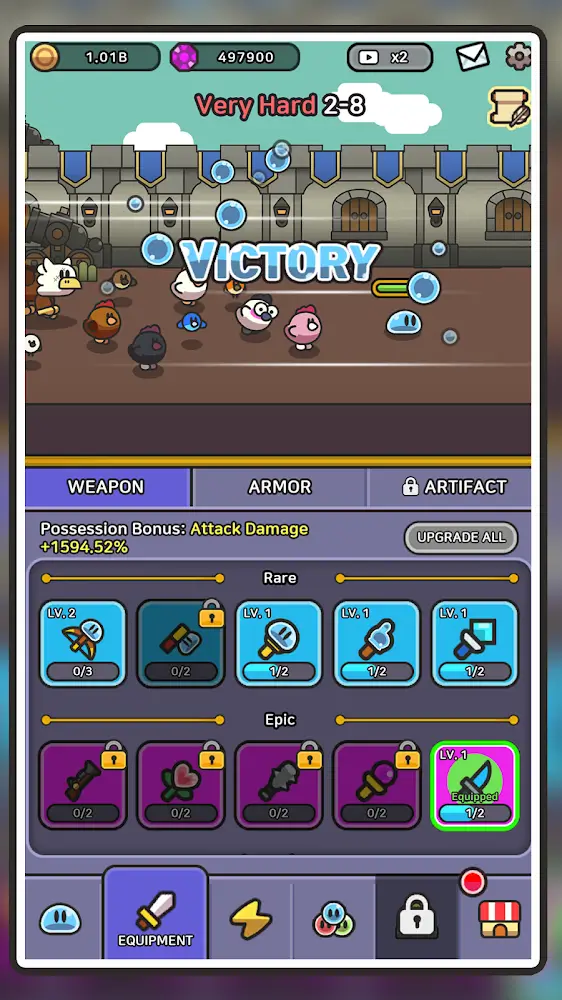 Legend Of Slime Idle Rpg Premium y battle monsters, from chickens to snails, to your army.Strategic Combat: Strategic squad-based combat system where you assemble different monsters with unique abilities.ENDLESSLY CUSTOMIZE YOUR SLIME ARMY WITH FUSION EVOLUTIONSAnother advantage of slime is that it is flexible and unpredictable. They are a type of demon without a skeleton or any special abilities. That is useful because it can fuse with other types of monsters to create new types of monsters with synergy. Add more weapons and armor to increase the fighting ability of this legion. A strange army that seems to be full of power.Unique Fusions: Fuse and evolve your slimes in unlimited combinations to create your perfect killing machine.Customizable Builds: Equip your slime army with weapons, armor, accessories, and more for strategic builds.Monster Collection: Discover and collect new monsters to add to your army and blend abilities.EXPERIENCE DEEP AND SATISFYING PROGRESSION SYSTEMSPlayers can control slimes to fight so they grow stronger and stronger. After leveling up, a skill will be added to your overall strength. Development in this ga