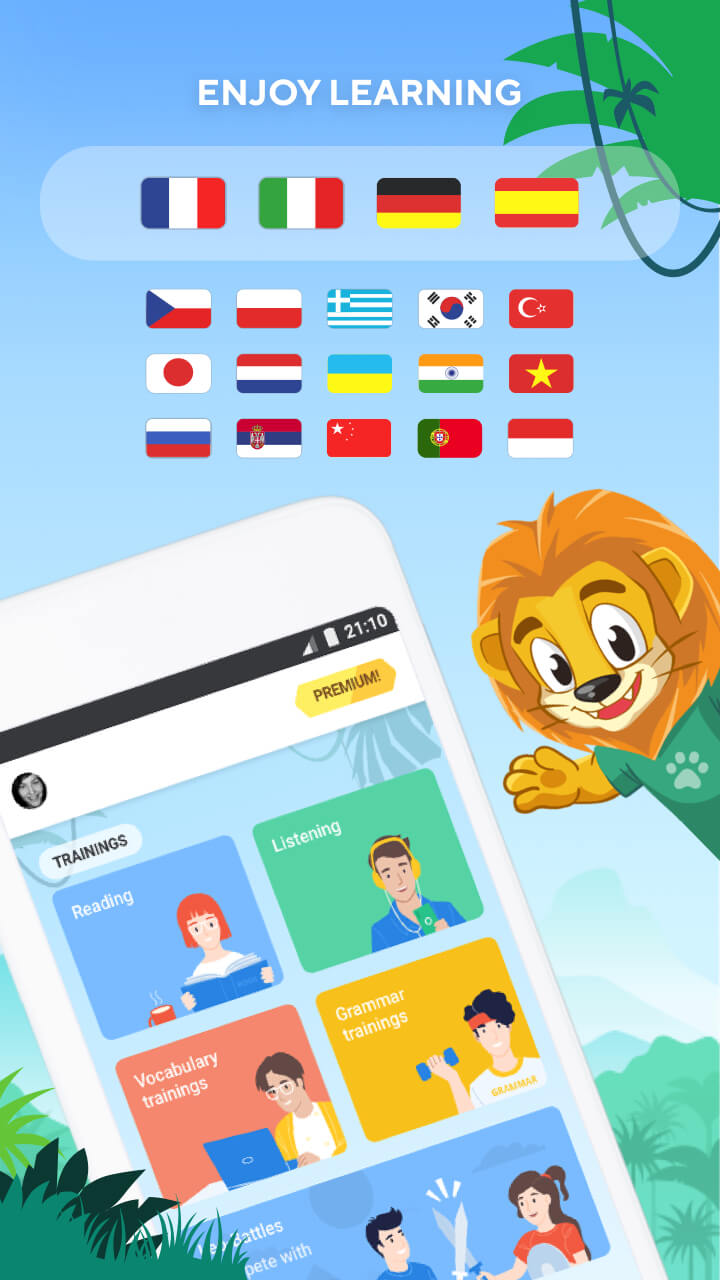 Lingualeo Mod Apk of languages taught includes English, Chinese, and many more. The system will provide quality lectures to make the new language more popular. Users start with building an account and choosing the level they want. Lectures will be concluded with several aptitude tests to assess your receptivity.The basic courses in English with Lingualeo