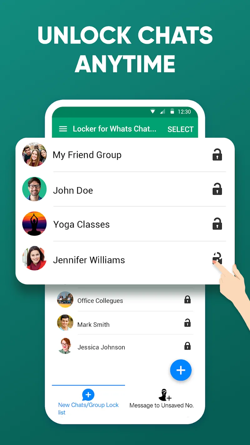 Locker For Whats Chat App Premium dentials. Your secrets stay hidden in plain sight.QUICK UNLOCKINGDespite robust security, WhatsApp Locker makes accessing locked chats quick when you need to. Using the app, just tap once on a locked chat, authenticate with your preferred method, and it opens straight into the WhatsApp interface. The makers optimized for convenience. Temporary accessibility enables seamless communication without sacrificing privacy long-term.MESSAGE UNSAVED NUMBERSWhatsApp Locker also enables messaging new numbers not in your contacts list without awkwardly saving them first. Just enter any number in the app to start chatting. This provides privacy if you don’t want unknown numbers stored permanently in your phone. Once your chat is done, the number is erased.MINIMAL PERMISSIONS AND DATA COLLECTIONUsers rightfully have co