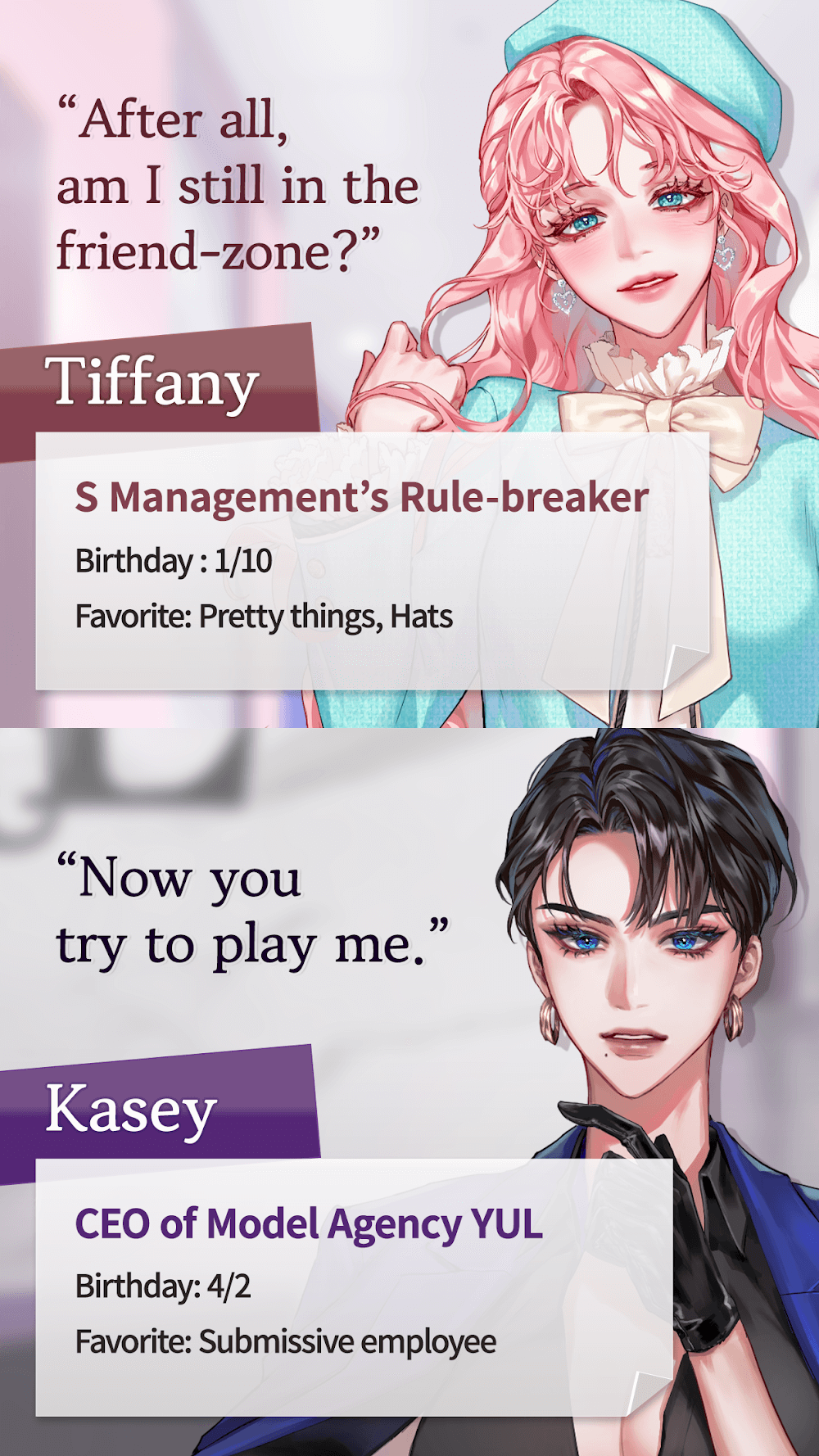 Love Liar The Naughty Lie Premium to look at the story and decide what happens next. You can make decisions and change the plot as it unfolds in real-time. You never know what to believe when it comes to love. Things are challenging because all four male characters are madly in love with you. You’re unsure if the Devil’s potion effectively makes your ex regret ever dating you. For better or worse, you can follow that witch’s lead. However, there is no way to end the event quickly, so many alternatives are offered. It’s important to double-check your options to make sure they’re real.HOW THE CHARACTERS ARE BUILTYou are a go