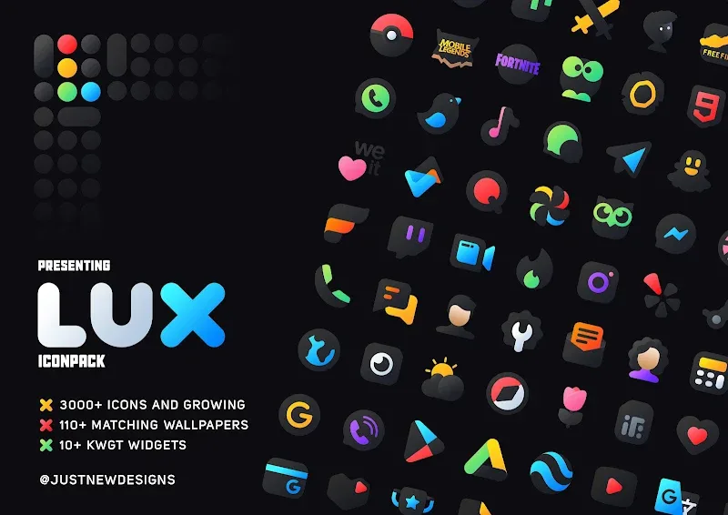 Lux Iconpack Mod Apk igns. Bringing you an interface with perfect icons down to every detail without any criticism.Unique and Different: The application will bring you unique themes and different styles. Bringing you extremely unique interfaces exclusively for you, without any limitations.Works With Both: The application will quickly become compatible with your phone and operating system. Bringing you the most attractive and engaging user experience.Top Notch Quality: Coming to this application, you will come acros