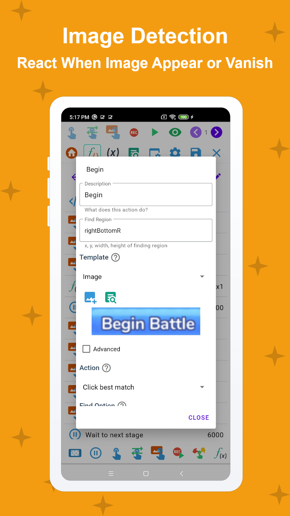 Macrorify Image Auto Clicker liteapks action swiftly.PUT IN SOME CODES FOR MORE ACTIONSYou are welcome to write code in this app, although doing so is not necessary. To put it another way, learning how to utilize EMScript is a piece of cake. After you have mastered the art of using this to your advantage when developing macros, your creative potential will no longer be constrained. Some scripts will help the process perform better and faster in some cases, giving you more ideas to automate some processes.