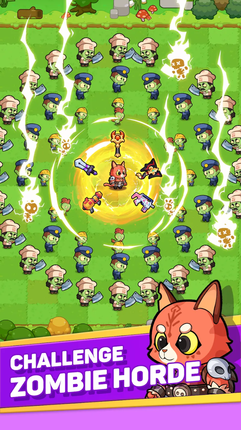 Players take on the role of a cat warrior and prepare to face the challenges from Meow vs Zombie. Many zombie armies have gathered and are preparing to attack the player. The journey to protect the homeland will officially begin. Players need to create their strategies to be able to preserve their lives and defeat the zombie bosses.ADDICTIVE ARCADE GAMEPLAYThe conflict between the two factions can lead to many different situations. Players will stand on the side of good and try to protect the best things. The cat’s homeland is being attacked by dangerous zombies. Their horror has caused many lands to become ruined and gradually disappear.