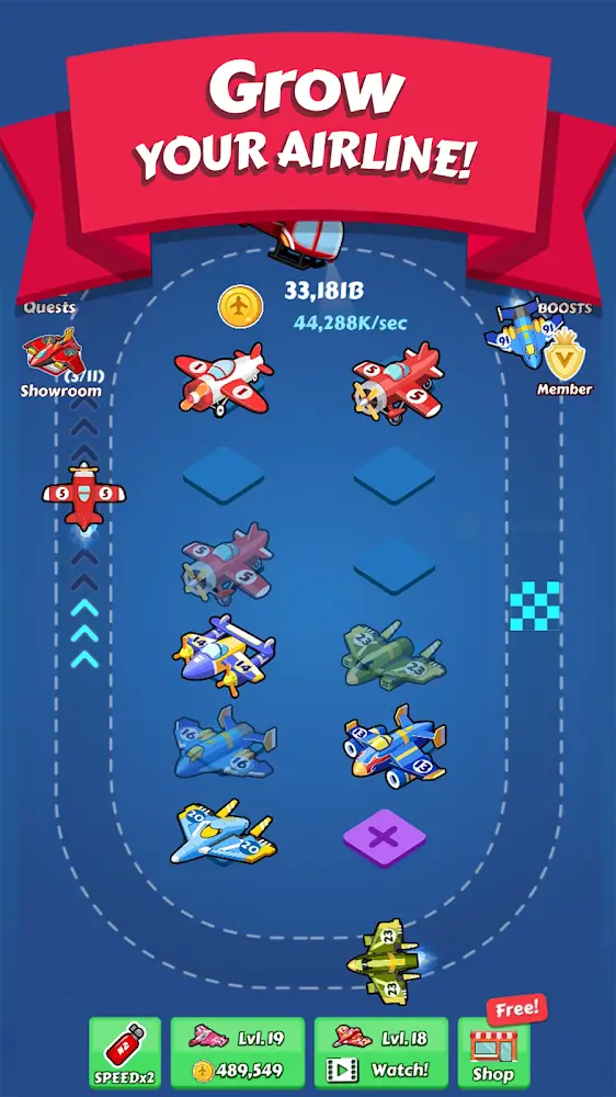 Merge Planes Empire liteapks anes with more power and faster engines, giving you more interesting and dynamic gameplay. After merging, the planes are stronger and have more beautiful and eye-catching designs.Earn idle money: You can also earn money even when you are not in the game. Because the games will give you an extremely idle money-making system, with this system, you will always have money in your pocket without fear of one day being poor and having no money to spend.
