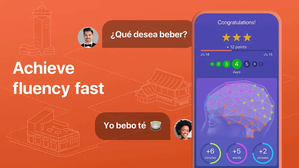 Mondly Languages Mod Apk rogram to suit them.Customized Lessons: Uses advanced AI to tailor lessons based on your strengths and weaknesses as a learner.Continuous Adaptation: Carefully adjust the difficulty and focus as you improve over time.Personalized Path: Creates the most efficient learning path to language mastery tailored just for you.Feedback and Progression: Provides feedback and adapts difficulty levels as you progress.LIFELIKE CONVERSATIONAL LESSONS LET YOU IMMERSE YOURSELF IN THE LANGUAGECommunication will be one of the most important skills a person learning a new language will need to acquire. To help its users increase this ability, the application has applied a special native conversation method. With this method, users will be able to learn practically and directly through common conversations and communication of native speakers. Many daily life topics, such as travel, family, business, dining, and more, have been integrated into the application.Native Conversations: Contains thousands of conversations between native speakers on real-life topics.Practical Scenarios: Covers essential scenarios like travel, family, business, dining, emergencies, etc.Listen and Repeat: Master pronunciation and practical vocabulary by listening and repeating.Confident Communication: Feel confident navigating real situat