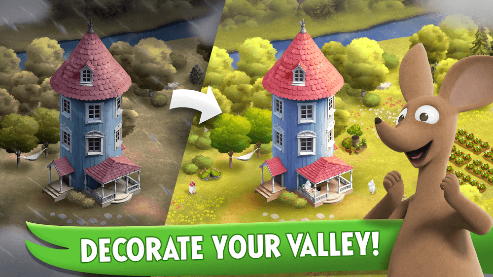 Moomin Mod APK is a soul-soothing game where you match countless items in your journey and earn yourself something worthwhile with your progression. Besides, the game employs decoration and escapes gameplay, where you renovate everything in your town with your match-3 talents and enjoy the sight you build over time with lovely friends.START A NEW JOURNEY AND REBUILD A THRIVING COMMUNITYWelcome to Moominvalley, the enchanted land where the charming Moomins live. The Moomins’ home, tucked away in a gorge