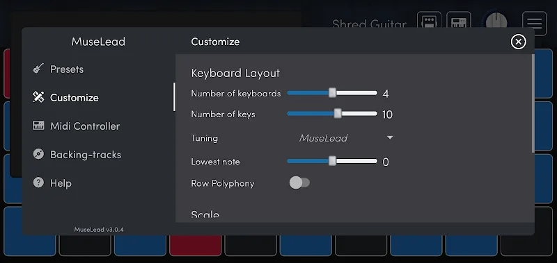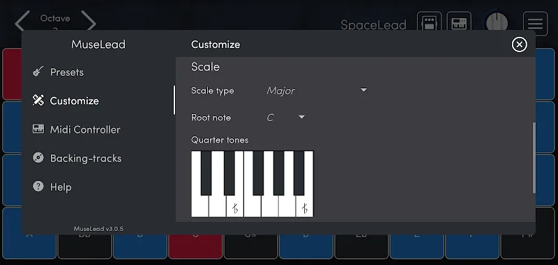 Muselead Synthesizer Premium All the gears of guitar gods are here.CRAFT YOUR OWN SYNTH SOUNDSMuseLead also equips synth wizards with robust sound design tools. Build unique synth and keyboard patches by individually sculpting oscillators, filters, envelopes, effects and more. The hands-on control composing directly on the multi-touch keyboard unlocks creative freedom. Share your custom presets or tweak synth legends from classic keyboards. MuseLead is a production playground!USE AS A MIDI CONTROLLER FOR ADVANCED INTEGRATIONFor pros, MuseLead inte