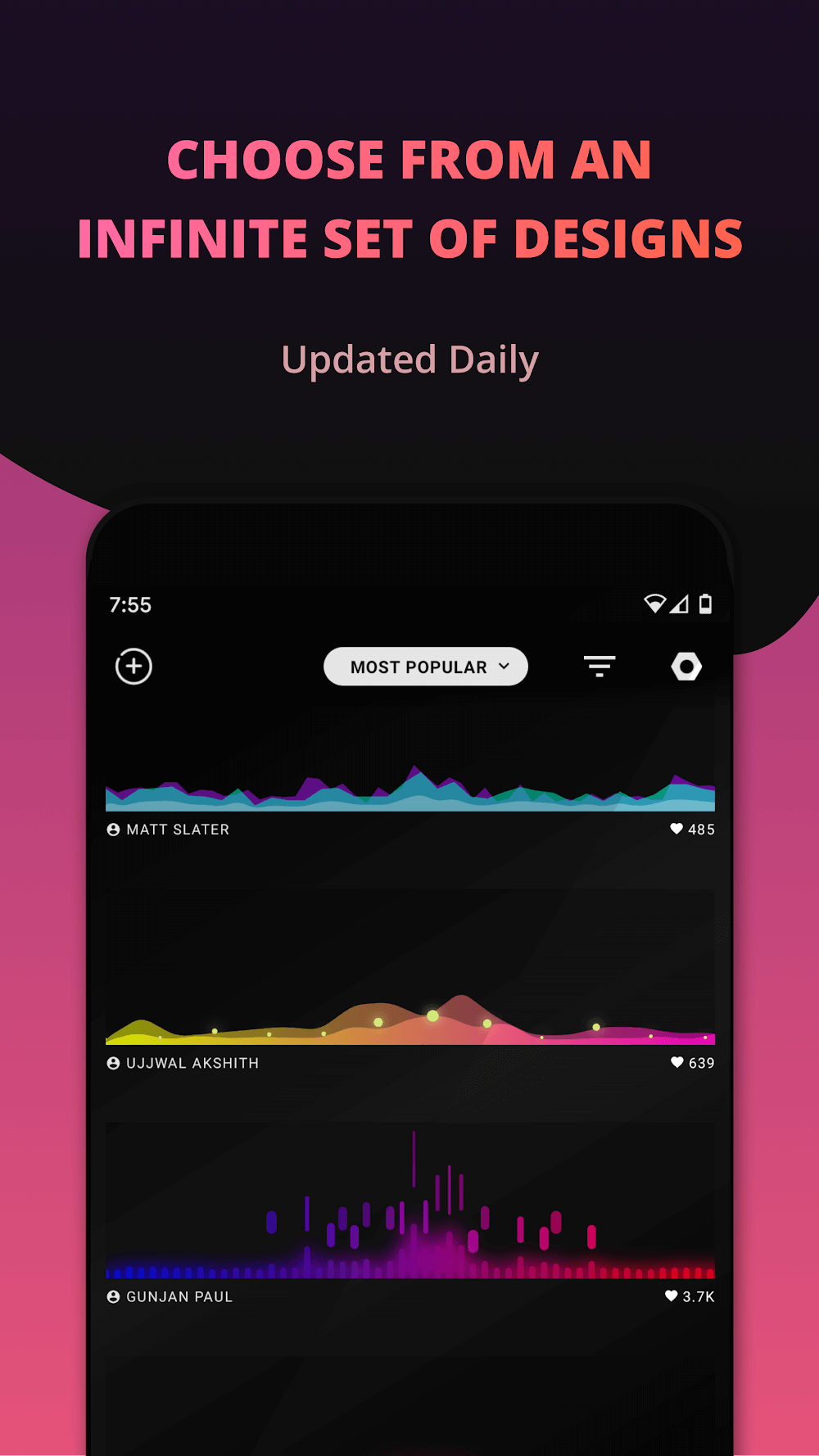 Muviz Navbar Music Visualizer Premium INSTANTLY WITH SIMPLE SLIDERS AND KNOBSMuviz’s user-friendliness isn’t confined to a single facet; the app’s simple controls make it possible to tweak the visualizer in real time as the music plays. You can modify the visualizer’s appearance in size, position, transparency, colors, effects, and other aesthetic characteristics. Muviz can work with the vast majority of music streaming services and mobile apps, and it’s as good as the best apps out there, including Spotify, Apple Mu