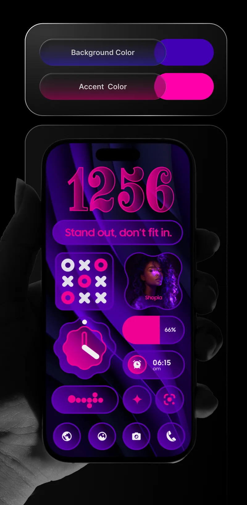 Neon Glass Widgets Mod Apk sers satisfied immediately.FULL CUSTOMIZATIONThe application makes a strong impression with a huge collection of hundreds of unique widgets and wallpapers. It also stands out thanks to the brilliant “neon glass” effect, creating a luxurious and modern look. In addition, the application also allows users to customize by personalizing the experience. Thanks to that, they can express their personality in a more unique way.Unique Glass Effect: A beautiful glass effect wil