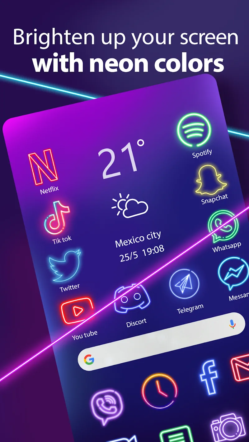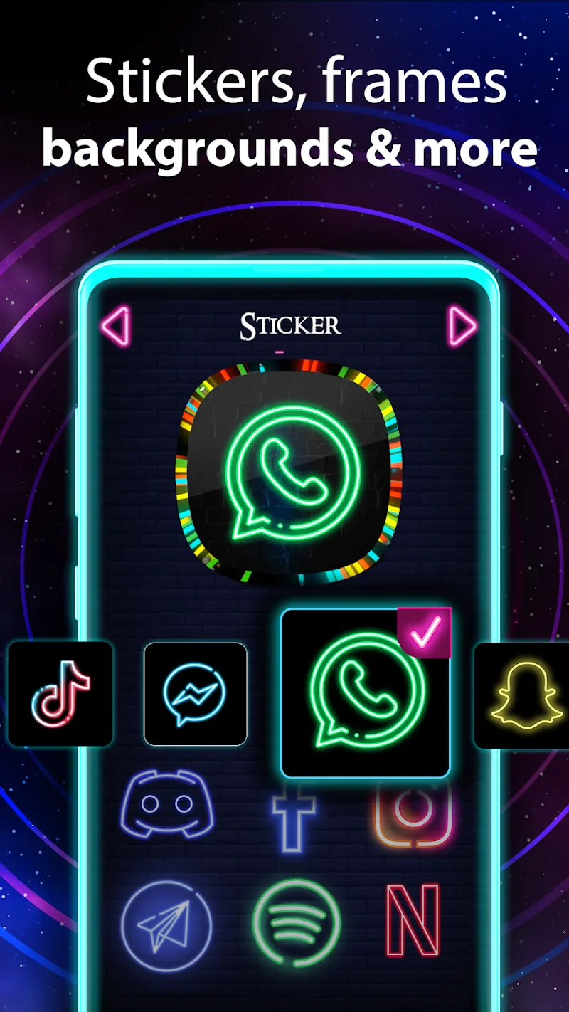 Neon Icon Designer App Mod Apk re these templates with friends and relatives.Vibrant Screen Illumination: Thanks to those lighting effects, your screen becomes more impressive and brighter thanks to the unique fluorescence. The application always wants your device to be more prominent than ever.Customizable Neon Palette: The application provides you with a variety of new neon colors and these colors highlight the device as well as the settings. Users can also customize and create more intuitive colors for themselves.Unique Visual Experience: Creating an
