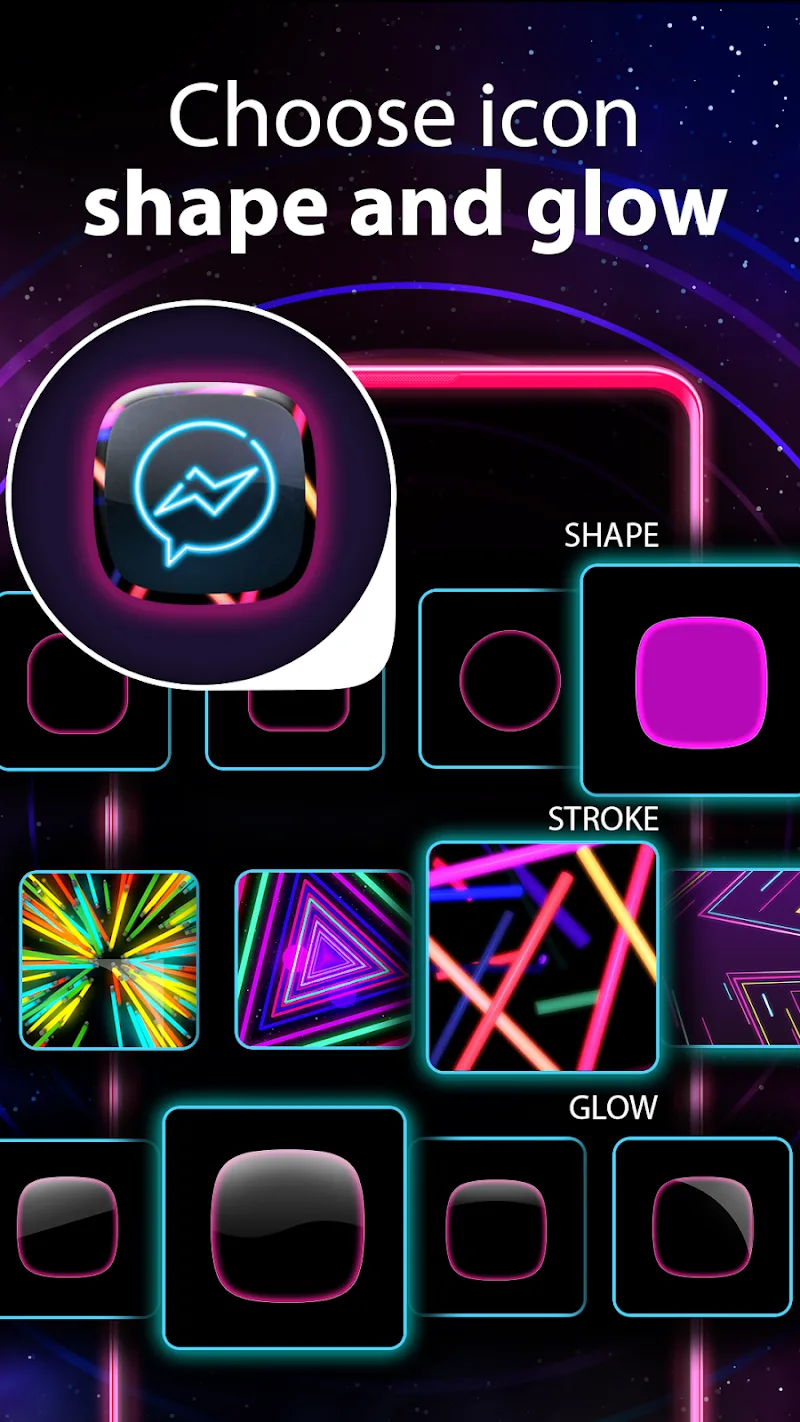 A series of impressive icons with characteristic neon colors provided by Neon Icon Designer App. Users can choose interesting icon templates for their devices and freely edit them according to their needs if they want. The application also provides suitable icon suggestions for your device.NEON ICON STYLEIf you are looking for icon templates that make your device brighter and more prominent, choose the icons provided by Neon Icon Designer App. Users will be allowed to choose intuitive, impressive icon templates and can sha