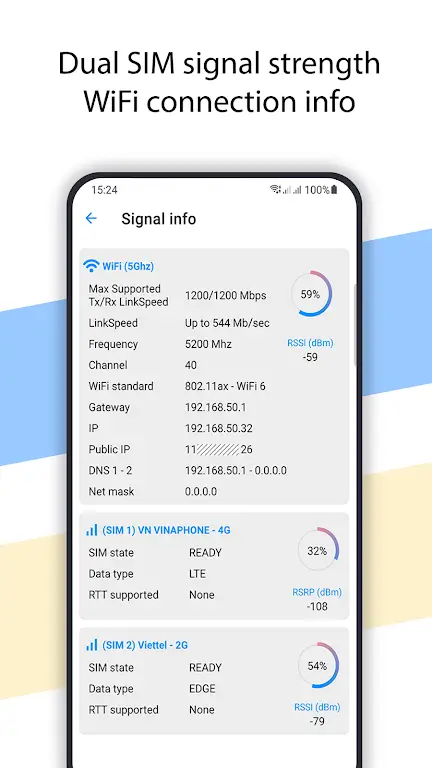 Net Signal Pro MOD APK – Check WiFi and cellular signal strength anywhere, find optimal areas for smart home devices.Connecting to Wifi allows users to access more information. However, the Wifi signal strength will not be stable. Net Signal Pro:WiFi & 5G Meter helps users check and record signal strengths. Information panels are shared directly on the screen for easy monitoring.REAL-TIME SIGNAL STRENGTH ANALYSISThe indicators displayed on the screen are the signal strength of wifi and the device. Users can enter the name and scan manually. This process helps your device connect to the strongest network source. Areas with less support will have weaker connection