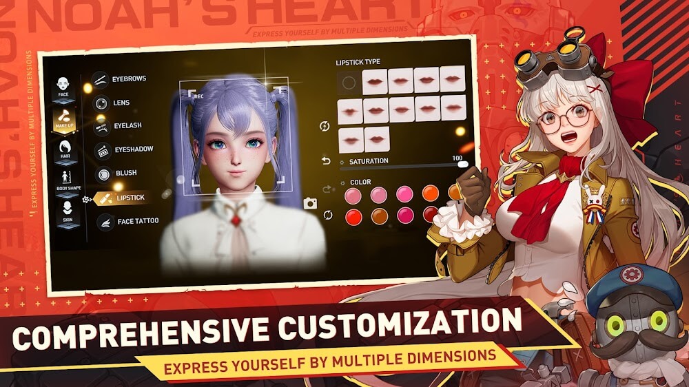 Noahs Heart liteapks nts and switch between them whenever you like. Form potent alliances with your allies to combat enemies of different factions and the dreadful monsters found within the dungeons. Noah’s explorers only venture into the world with a support team.MAGNIFICENT AND IN-DEPTH CHARACTER CUSTOMIZATIONCreate something fresh and show off your uniqueness to the world. Make use of the extensive personalization tools available to highlight your unique qualities. You have complete control over every aspect of your physical appearance, from your eyes and lips to your hair and clothing choices. On Noah’s Earth, the best way to get noticed is to wear a historically accurate and completely ridiculous costume. You can choose from a wide range of alternatives and enjoy the gameplay how you want with endless preferences.
