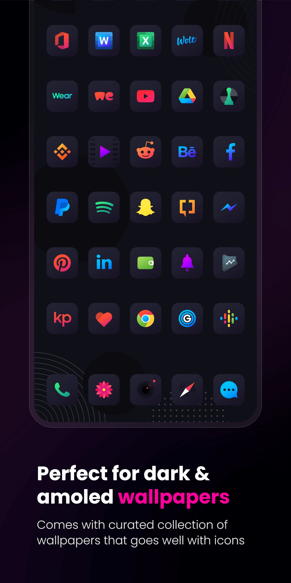 Nova Dark Icon Pack Premium s able to adapt to those mobile devices and provide all the functions that the app normally has.Special icon pack: Sometimes there are icon packs that are only designed specifically for a mobile device so that it creates a unique feature of that user’s device.WALLPAPERIn order to make your icons appear clearer and more vivid, the app has also made efforts to provide more types of wallpapers to go with the icon pack. These wallpapers have a different feature compared to other wallpaper changing apps in that the wallpaper is completely designed to highlight and also match the icon set that the user is using.Wallpaper specifically designed for icons: Although the app currently only has 43 wallpapers, these wallpapers all look very unique. The special thing here is that these wallpapers are designed to make the icons stand out in the middle of the screen.Wallpaper for convenience: There are many wallpapers based on the user’s purpose when setting up icons. Users will be allowed to choose a bright wallpaper that matches their icons or a dark wallpaper to make