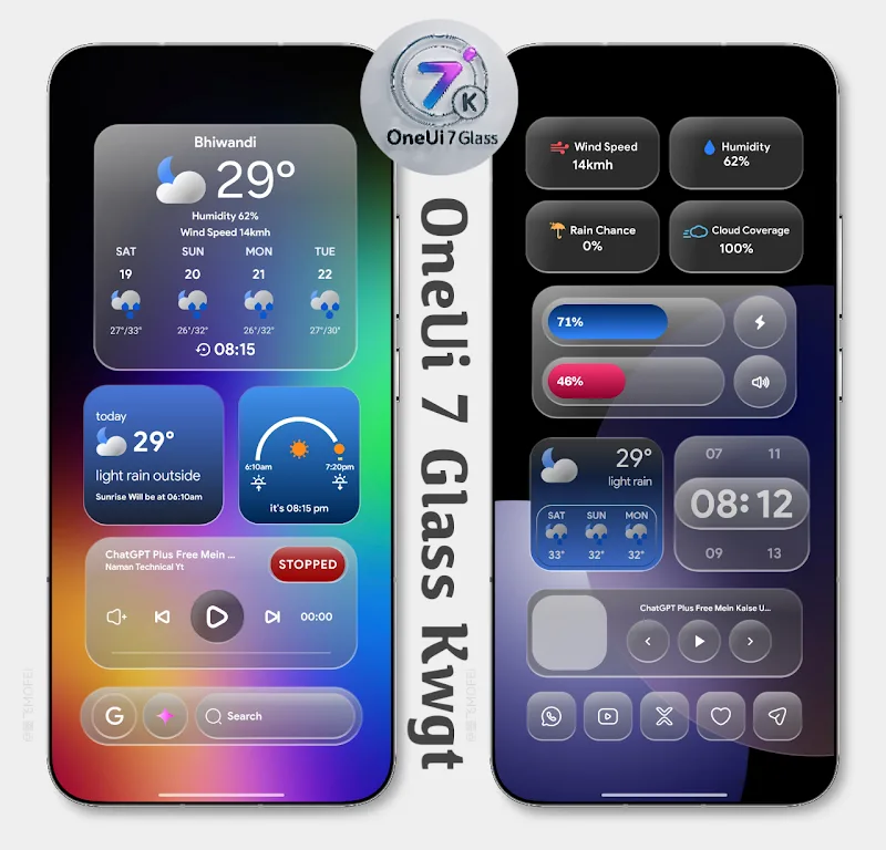 Oneui 7 Glass Kwgt Mod Apk egant and luxurious with this unique glass interface. Bringing you extremely attractive and interesting experiences.Visual Appeal: Coming to this application, your device will have an extremely eye-catching and outstanding interface. This interface will make you extremely satisfied when you see it for the first time.Elegant Layout: The application gives you an extremely elegant layout. Brings you extremely attractive and interesting experiences.Dynamic Transparency: In this application, you can ad