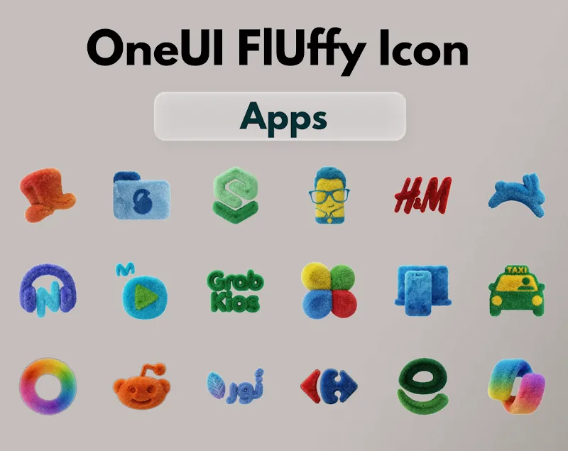 OneUI Fluffy Icons is an application that provides users with overlaying app icons. It also allows users to change the screen wallpaper with a soft and elegant 3D style. The designer uses soothing colors to give users a gentle and relaxing experience.UNIQUE DESIGNThe design is different, with the designer’s innovative thinkin