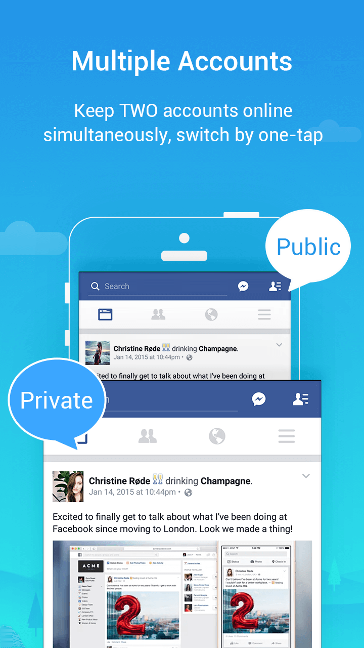 Parallel Space Mod APK – You may clone the app’s account and run numerous instances of it in parallel, and you can use themes to decorate your own personal area.As the name suggests, Parallel Space – app cloning is an application that allows users to create additional space on the phone, thereby “cloning” applications as desired and using them at the same time. You don’t need to own multiple devices to still use one application with multiple versions. This is convenient for gamers who want to “play games” on many different accounts or meet the needs of those who are under the pressure of multitasking, often having to switch back and forth between work and personal accounts. multiplier to handle multiple tasks at the same time.PARALLEL ACCOUNTSThe first feature of the application is to allow users to use multiple accounts in parallel and independently. To put it humorously, for anyone who has the hobby of using a clone social network account t