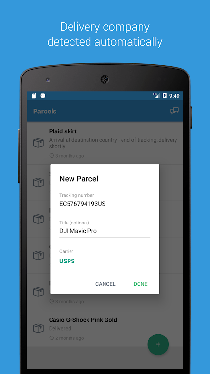 Parcels Premium to wonder where your packages are. The app’s intuitive design will make switching between carriers easier than ever before, greatly improving your tracking experience.DELIVERY COMPANY DETECTED AUTOMATICALLYUsing this app, you no longer have to enter tracking numbers manually. The app employs several complex algorithms to determine which delivery service is responsible for your package. This state-of-the-art software will save you time and prevent errors when entering tracking information. Putting as little effort as possible into building the app is not only a waste of time but also a waste of the user’s experience. Enjoy peace of mind knowing that your packages will always be within easy reach with “Parcels,” an app that does all the hard work for you.TRACK ALL YOUR PACKAGES FROM CHINAMore and more international markets have made it simpler to get goods from all around the world, incl