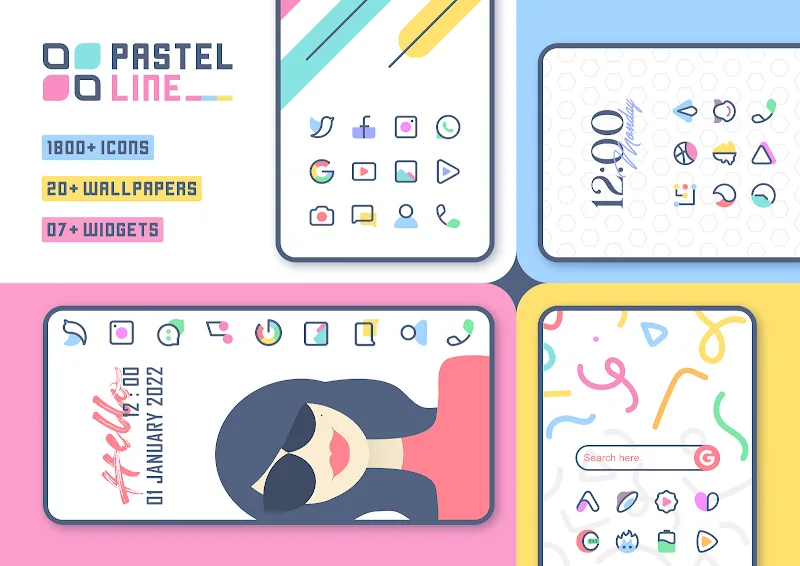 Pastelline Iconpack Mod Apk with sleek, new icons. It’s like a never-ending game of ‘spot the new icon’ right on your phone!WALLPAPERS THAT WHISPER “WOW”Wallpapers are the canvases of our phones, and PastelLine IconPack is the artist. With over 20 handcrafted wallpapers, your device will ooze style and personality. Each wallpaper is like a love letter to pixels, crafted with care to complement the icons. They’re not just backgrounds; they’re backdrops to your digital life, ensuring that your apps are sitting on a throne of digital beauty. It’s like your phone dressed up for a gala and you’re invited to the show every time you unlock it.WIDGETS THAT WOOWidgets are the new black, and PastelLine IconPack has a collection of 7+ matching widgets for KWGT that are the perfect accessories for your device’s ensemble. These widgets aren’t just functional; they’re fashionable, designed to sync beautifully with your icons and