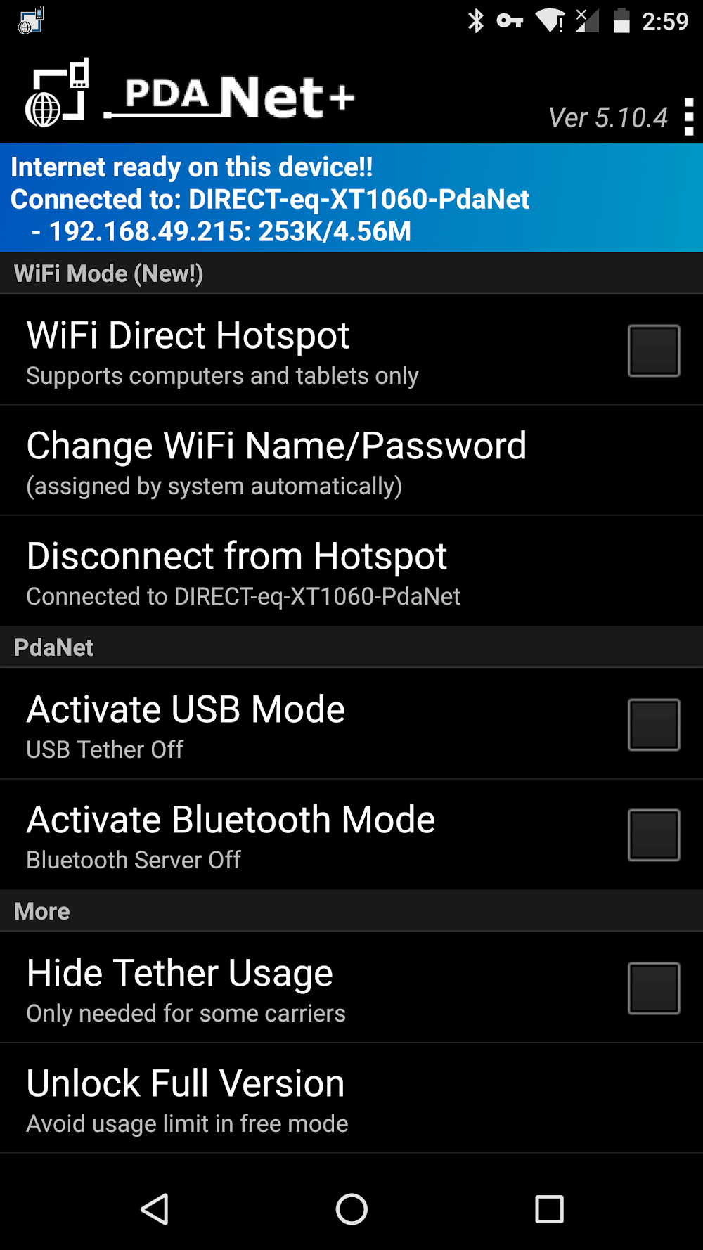 Pdanet liteapks ypass carrier restrictions that block using your phone’s mobile hotspot feature.Avoid Data Throttling: It lets you avoid mobile hotspot data usage caps and speed throttling imposed by your carrier.Use Data Freely: You can use your cellular data connection freely without limitations, caps, or throttling imposed by your mobile carrier.USER-FRIENDLY SETUP AND INTERFACEThe last feature, but also one of the most important features, that any application needs to pay attention to is the interface. PdaNet+ has also paid great attention to users’ actual experience by equipping them with a carefully prepared setup system that is simple and quick to use. Not only that, the application has also arranged all of its basic to advanced features into different points of the interface to provide the most intuitive usability.Simple Setup: The app is designed with a simple and quick setup process so users can easily start tethering.Intuitive Interface: An intuitive and friendly user interface allows users to easily get acquainted with and use the features proficiently.Large User Base: A large user base recorded through 30 million downloads will allow the creation of a large community that shares information.