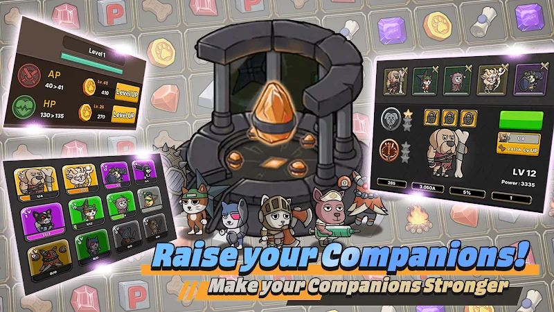 Pets War Idle Premium will be. The more, the merrier, and here we can see that: the more power. When you collect more pets, the collective index will be increased.STRATEGIC BATTLESIn addition to contemplating your cute and adorable army, you will also experience many other interesting things. This is exactly a strategy game. Therefore, strategic thinking is extremely necessary to help you win.Tactical Gameplay: With an army of pets, combination strategy is the first thing you need to care about. Which skills go together will create incredible overall strength. On the contrary, if you c