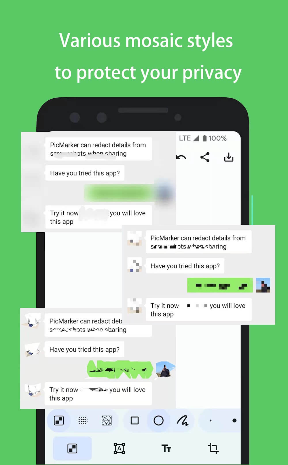 Picmarker Blur Markup Premium ext to the stickers.Seamless Sharing & Saving: Throughout the process of use, a hidden feature is quickly added. Specifically, you can crop any element on the screen similar to using a PC.DIVERSE MOSAIC STYLES & QUICK STARTIn addition to interacting and saving images, the application still adds some new resources. From there, new styles often come with colors that you cannot ignore.Variety of Mosaic Styles: Effects can be considered for use if they meet different