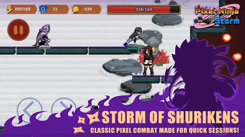 Pixel Ninja: Storm embarks on a special journey with a veteran ninja. Players take on the role and fight fiercely to defeat the opponents they encounter in the arena. Each match is a smooth combination of the player’s ability to observe and control the character. The appearance of powerful bosses can become a big obstacle for the player.HYBRID GAMEPLAY MECHANICSPlayers combine many skills to create a magical source of power to defeat all opponents. The player will conquer the arena by continuously progressing and upgrading. The match will be controlled by the player thanks to the player’s extremely flexible and sensitive