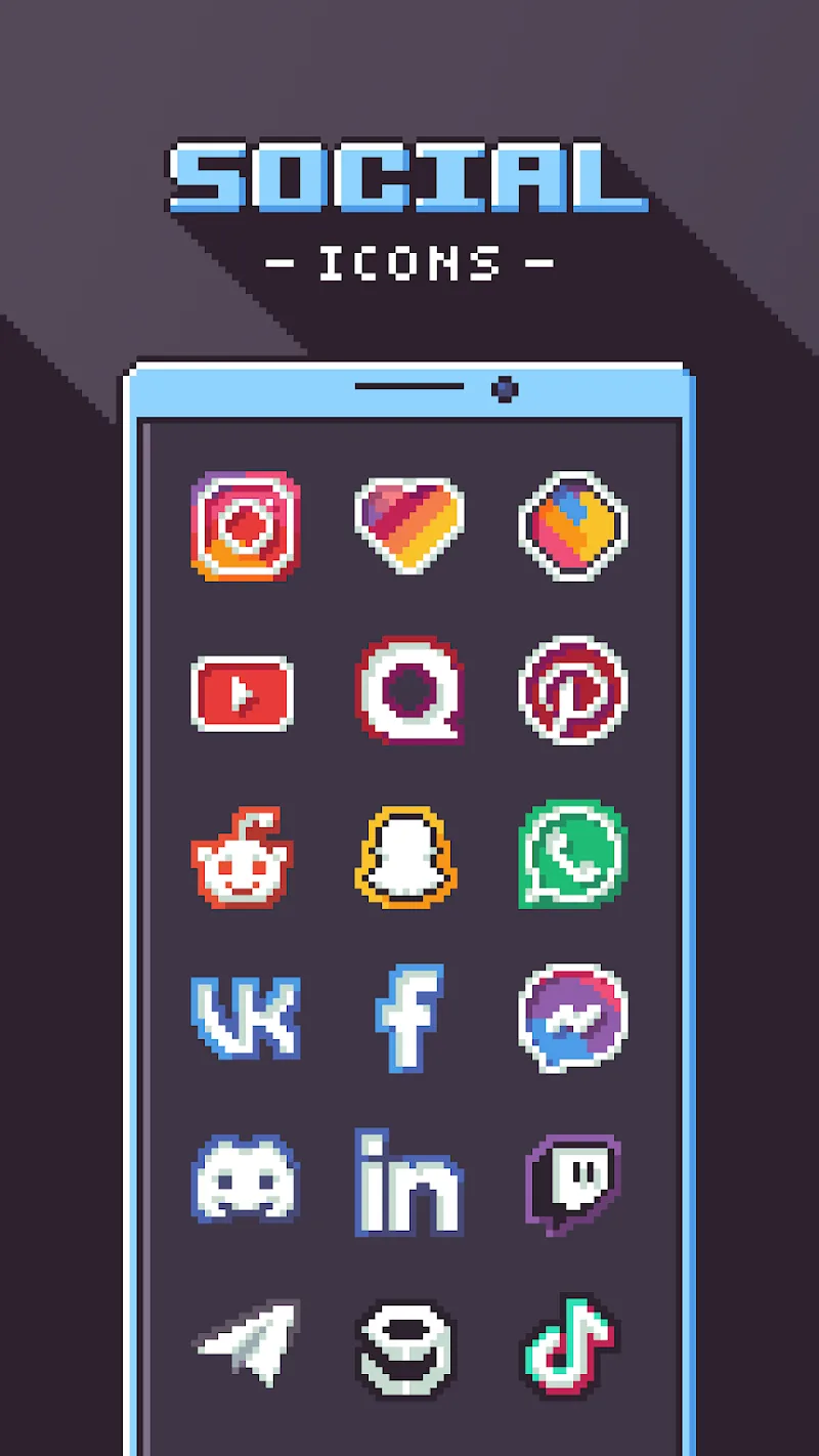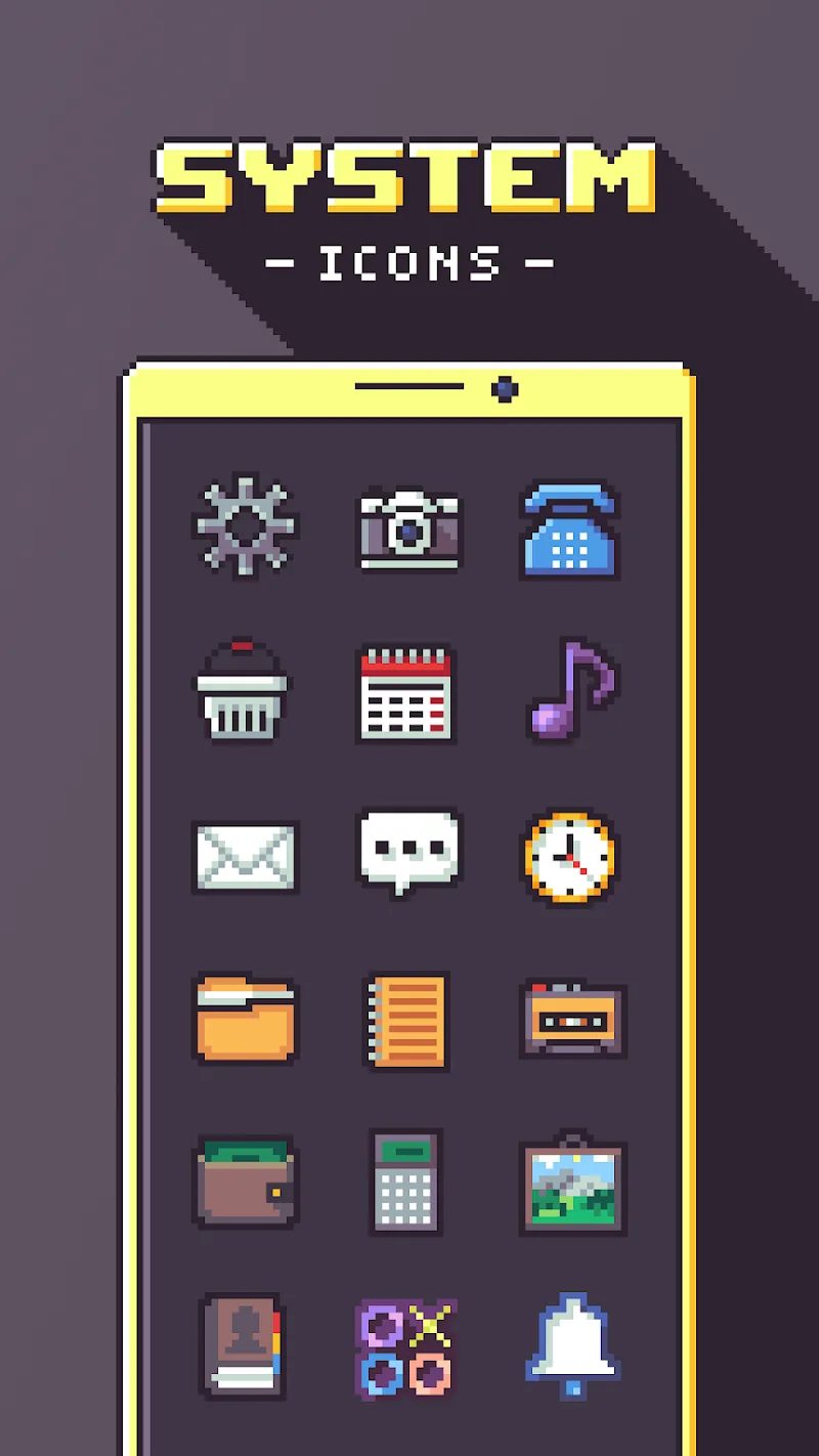 Pixelcon Icon Pack Mod Apk ixel-style icons. All the icons shared by the app are high resolution and allow users to perform many customization options. You can choose the icon according to your needs of image usage, content, or art.Exclusive Background Selection: Pixel art has not only helped the app creators create thousands of icon templates but also helped them create around 50 exclusive pixel art wallpapers. This amazing development marks a groundbreaking return to the classic pixel style.Clean Polished Appearance: The goal of the app is to provide pixel wallpapers and icons to any user who needs to use them. Therefore, the app has tried to keep the inte