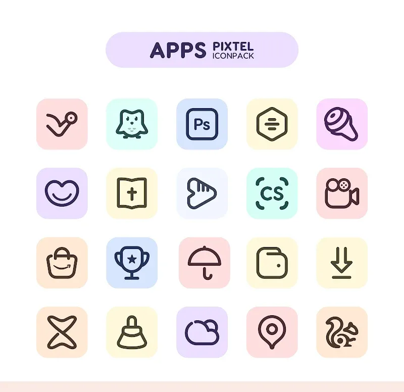 Pixstel Iconpack Premium pace in the device. The style of the interface is reshaped once again.HIGH-QUALITY DESIGNThe icon pack released by the application has the beauty of warmth brought by the pastel color palette. Users will be extremely excited to use the meticulously designed special icon pack. The idea of designing an icon pack with a gentle style but still has highlights has been implemented by the application.Top notch quality: This icon pack has a desirable quality that meets the requirements of many users. The application creates a unique collection of icons that everyone will love. The HD quality will
