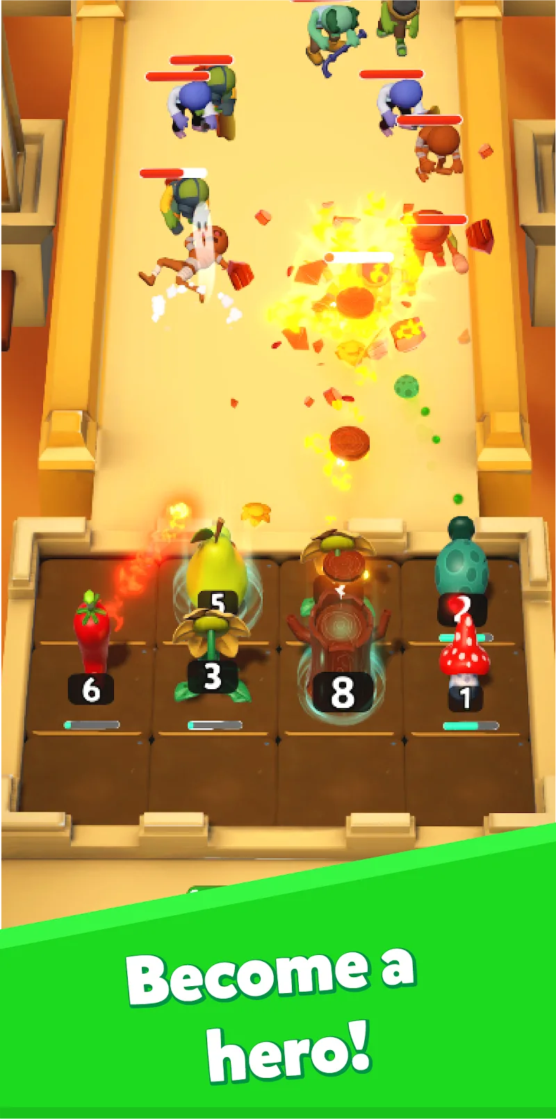 Plant Squad creates familiar tower defense gameplay in a post-apocalyptic world. At the same time, dangerous zombies with many characteristics will quickly find a way to turn you into their kind. Strong allies can perform many exclusive attacks and change the situation of the match.STRATEGIC PLANT MERGINGColorful zombies are trying to move towards you, so destroying them becomes a gameplay in Plant Squad. Each person will take advantage of transformed plants and launch many powerful attacks.Merge for Powe