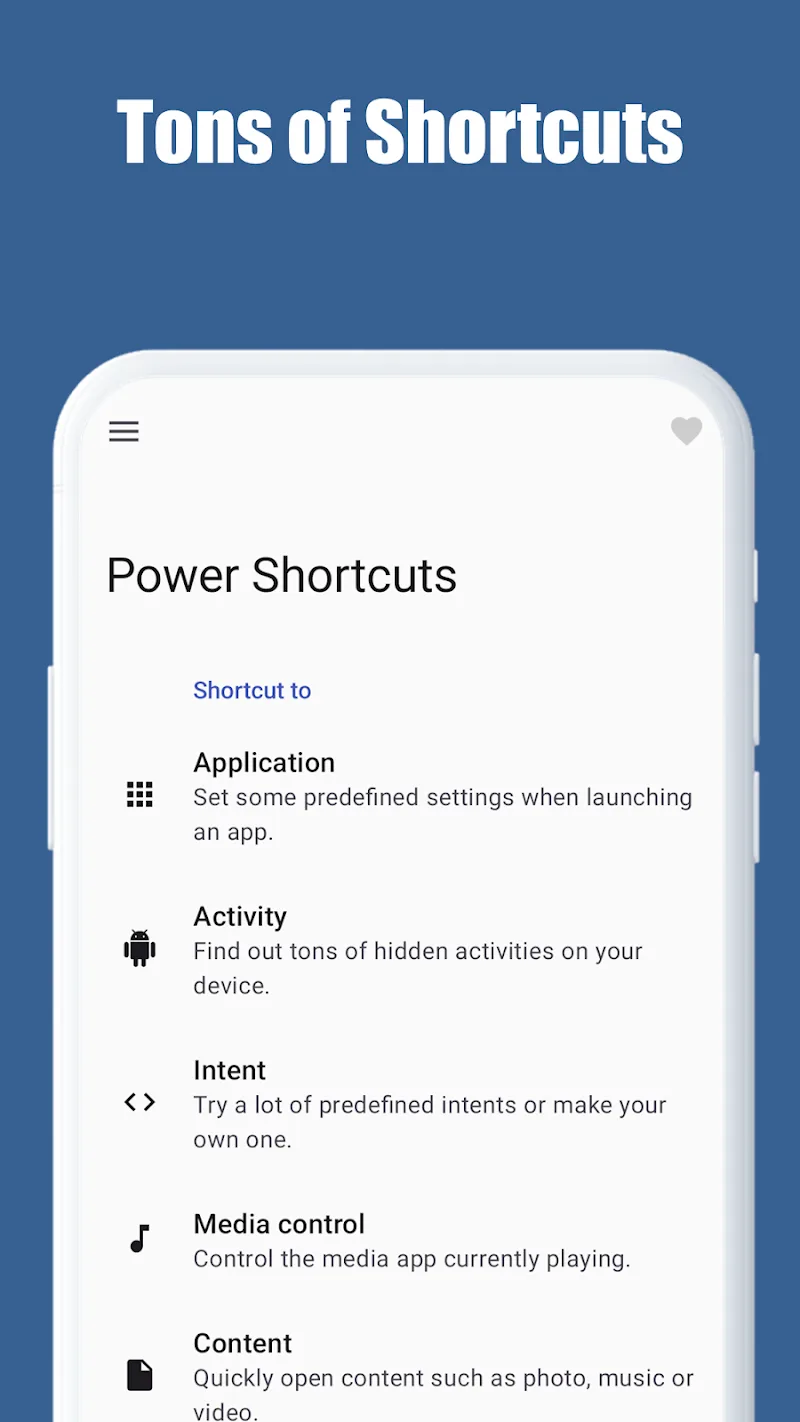 A smartphone has a lot going on. It can have hundreds of apps running at once. But in reality, only a few apps are active most of the time. So, every time you want to launch an app, you have to go through the whole process of searching for it. Now, with Power Shortcuts, you can launch any app with just one button. You can even organize them into groups for easier use next time.APPLICATION LAUNCHERReasonable for numerous diverse launchers and not losing the initial fun of most settings is one of the modern impressions. The application guarantees to br