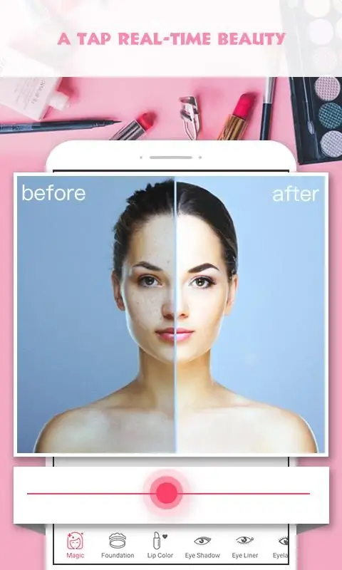 Pretty Makeup offers the perfect camera, suitable for everyone for its beautiful filters and special effects. The system applies a great makeup formula to the user when it recognizes their face. Therefore, the application becomes the best choice when creating selfies alone or with friends. The makeup effects can be adjusted according to your preferences. A list of suggestions worth experimenting with will be provided to you so that all the photos created have the best quality.LIST OF SPECIAL EFFECTSThere will be no limitations in Pretty Makeup, including facial effects. With a full range of styles and a wide range of color options, users can