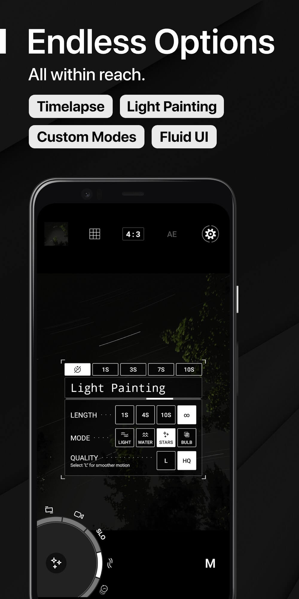 Proshot 2 Mod Apk All parameters are under your control and allow you to create a finished product.Take full advantage of the application’s potential: Previous products will become artistic and attractive.DUAL DIAL INTERFACEBesides taking photos, ProShot can also help you achieve a completely diverse number of videos with different ratios. Users can unlock dozens of different ratios to capture the corresponding moments. In other words, content is sometimes also the object that influences user adjustments. In addition, anyone realizes that choosing ratios is absolutely important, especially when they upload them to different platforms, such as video streaming platforms or social networking sites. Memorizing these ratios is absolutely something that deserves users’ attention.Quick adjustments: Features that can be used on the home screen, help users see results.Advice when adjusting: To make it easier for you, you can consider the available guides to get the right parameters.LIGHT PAINTING MODESIn ProShot, users will see a professional feature layout, and at first, it feels quite strange to users because it is different from the available features. At the same time, arranging the fe